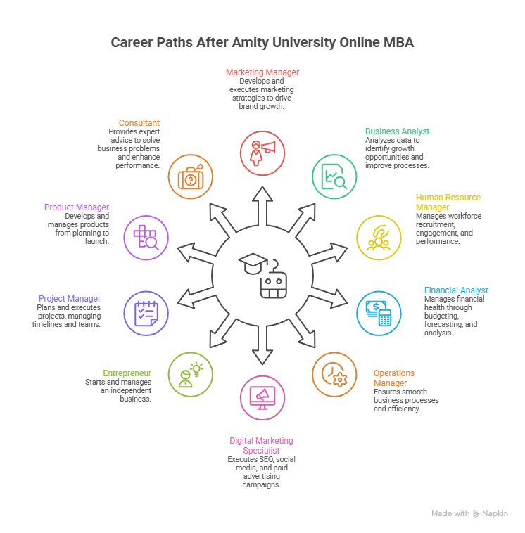 However, one of the most common questions students have is: What are the career opportunities after Amity University Online MBA?